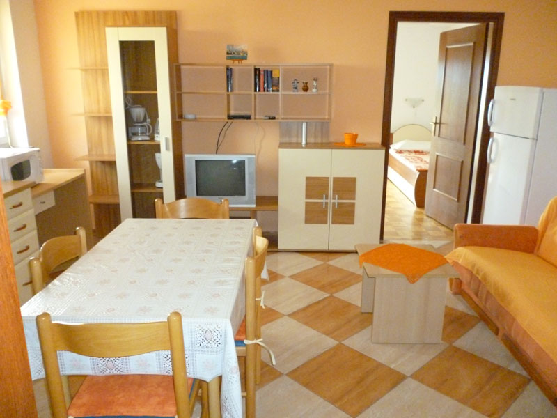 Bed 2+1, bathroom, dining room, kitchen (kettle, microwave, coffee maker)